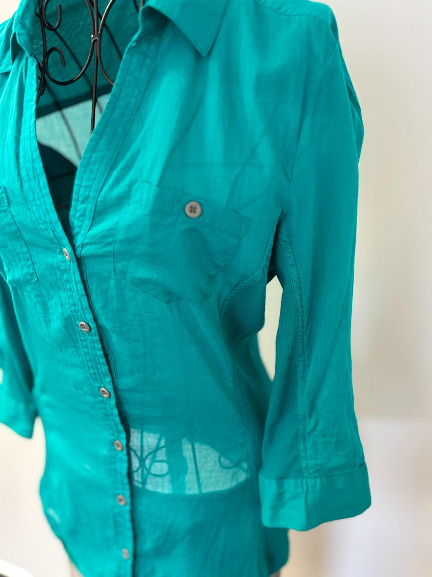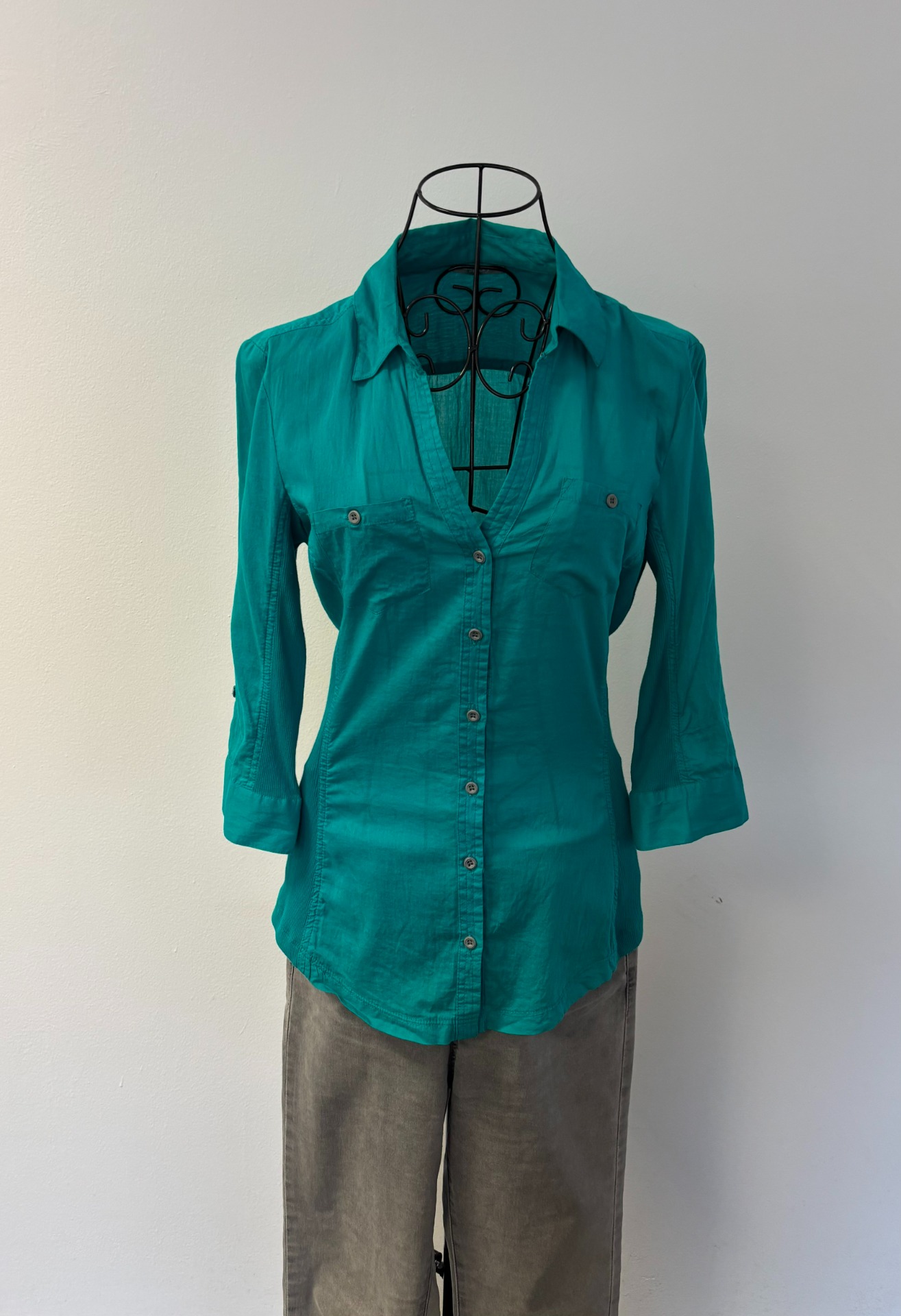 Košile je s 3/4 rukávem vhodná pro příležitostné nebo kancelářské nošení.