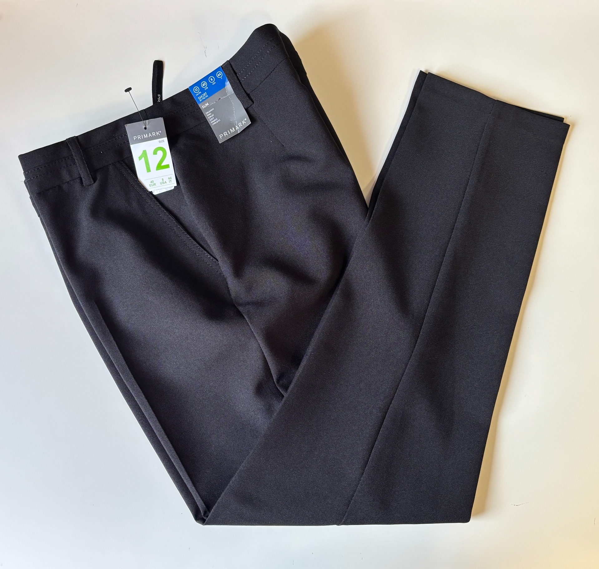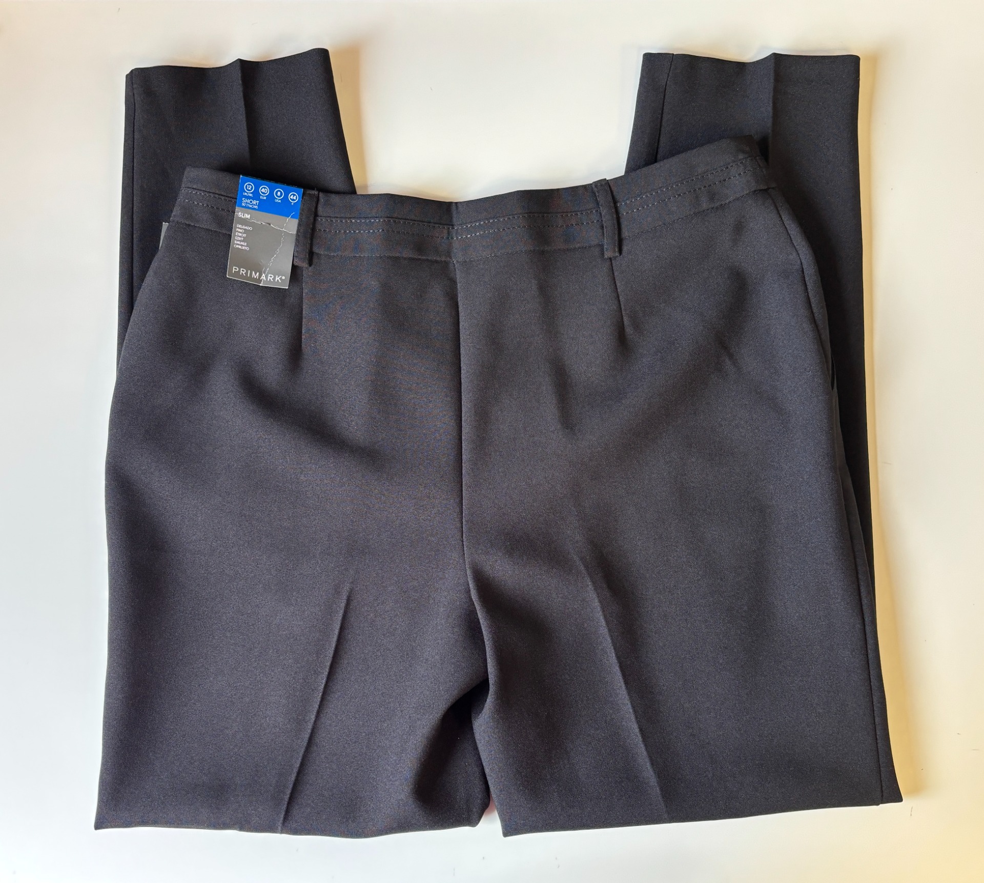 Jedná se o dámské kalhoty značky Primark. Kalhoty mají rovnou nohavici a jsou černé nebo tmavě šedé barvy s vysokým pasem a zapínáním na zip a háček. Na visačce je uvedena velikost 12.