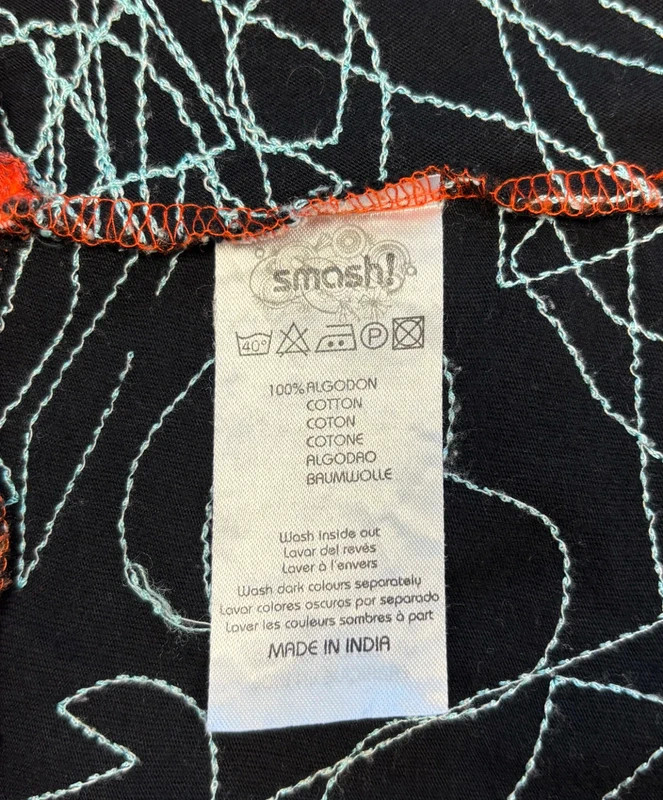 Barevné, vzorované šaty mají jedinečný design (asymetrický potisk). Made in India.