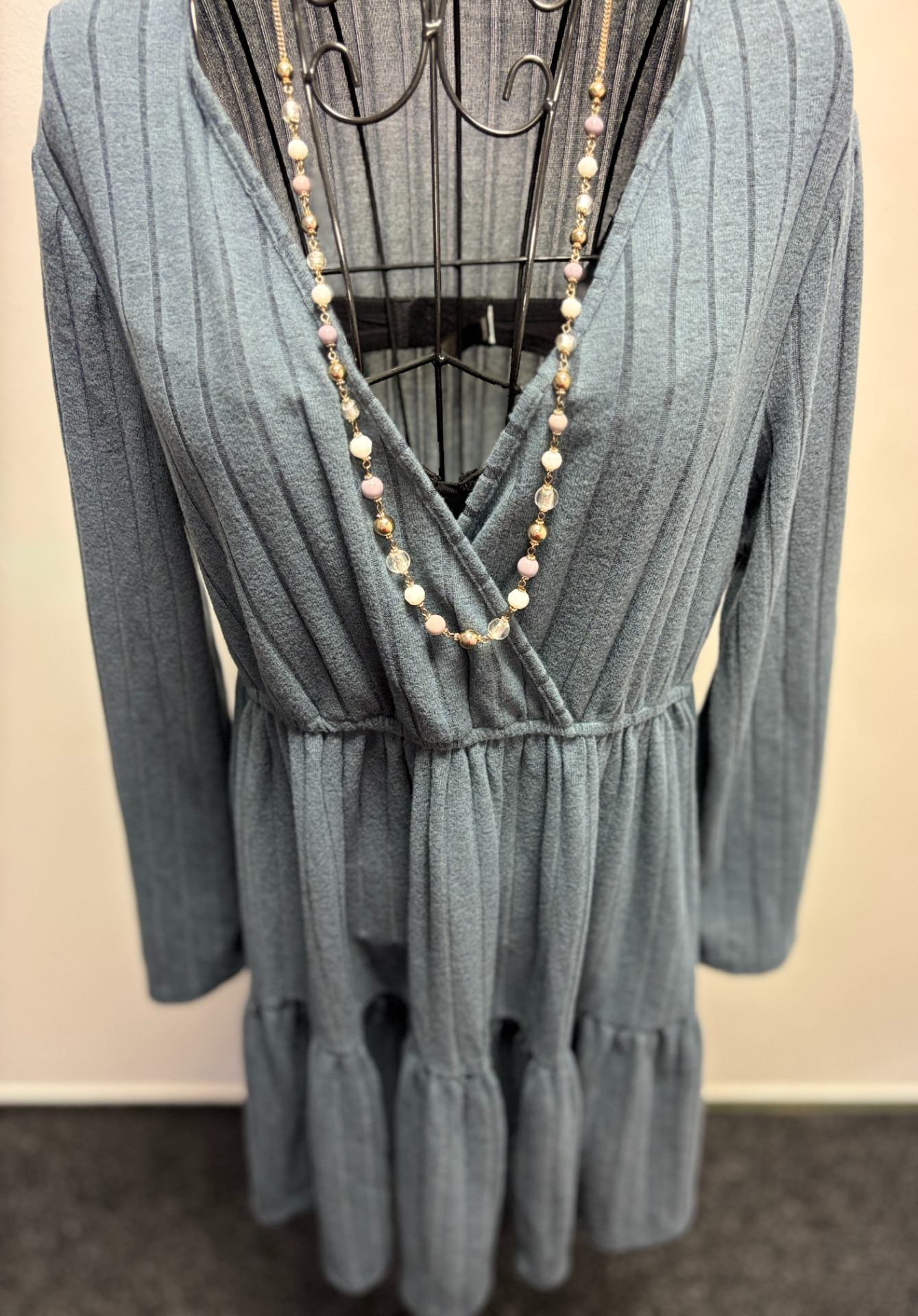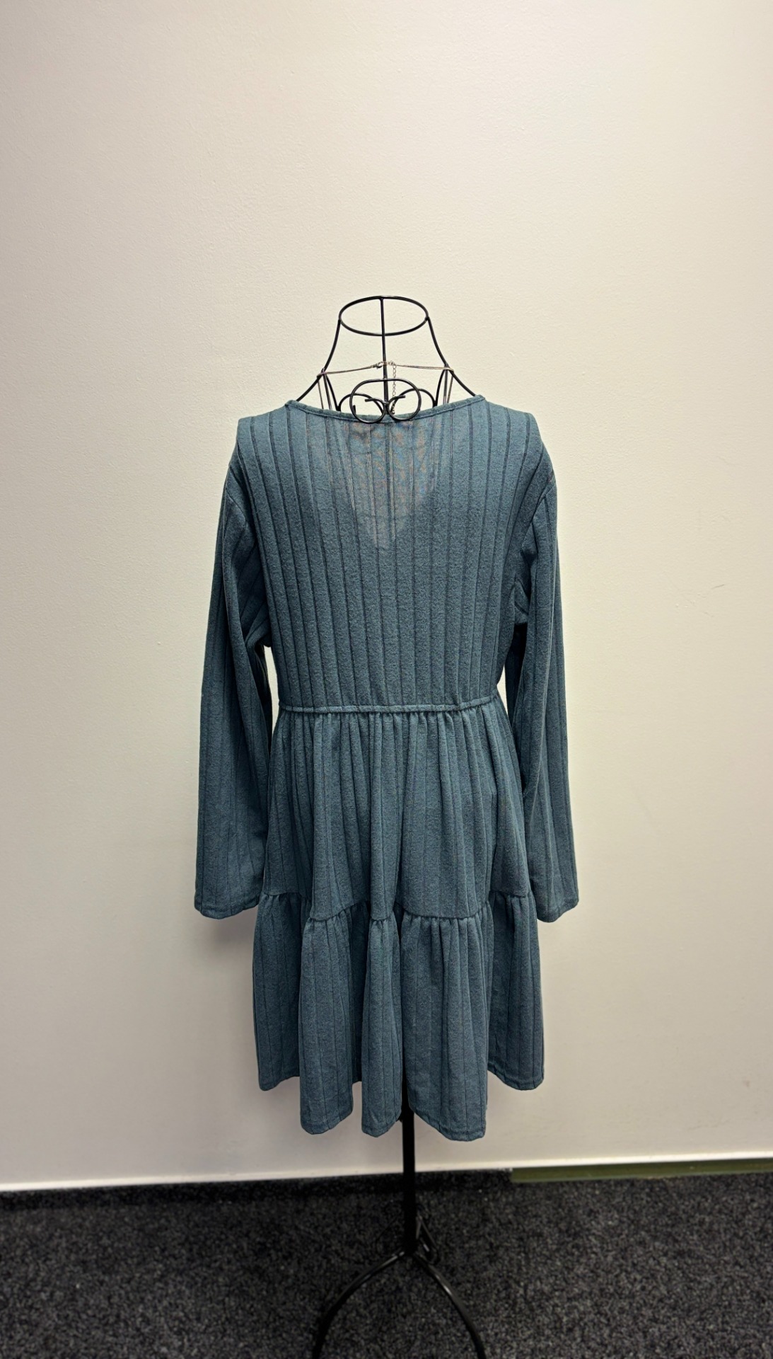 Tyto pletené šaty jsou vyrobeny z kvalitní polyesterové tkaniny a nabízí pohodlí a měkkost pro celodenní nošení.