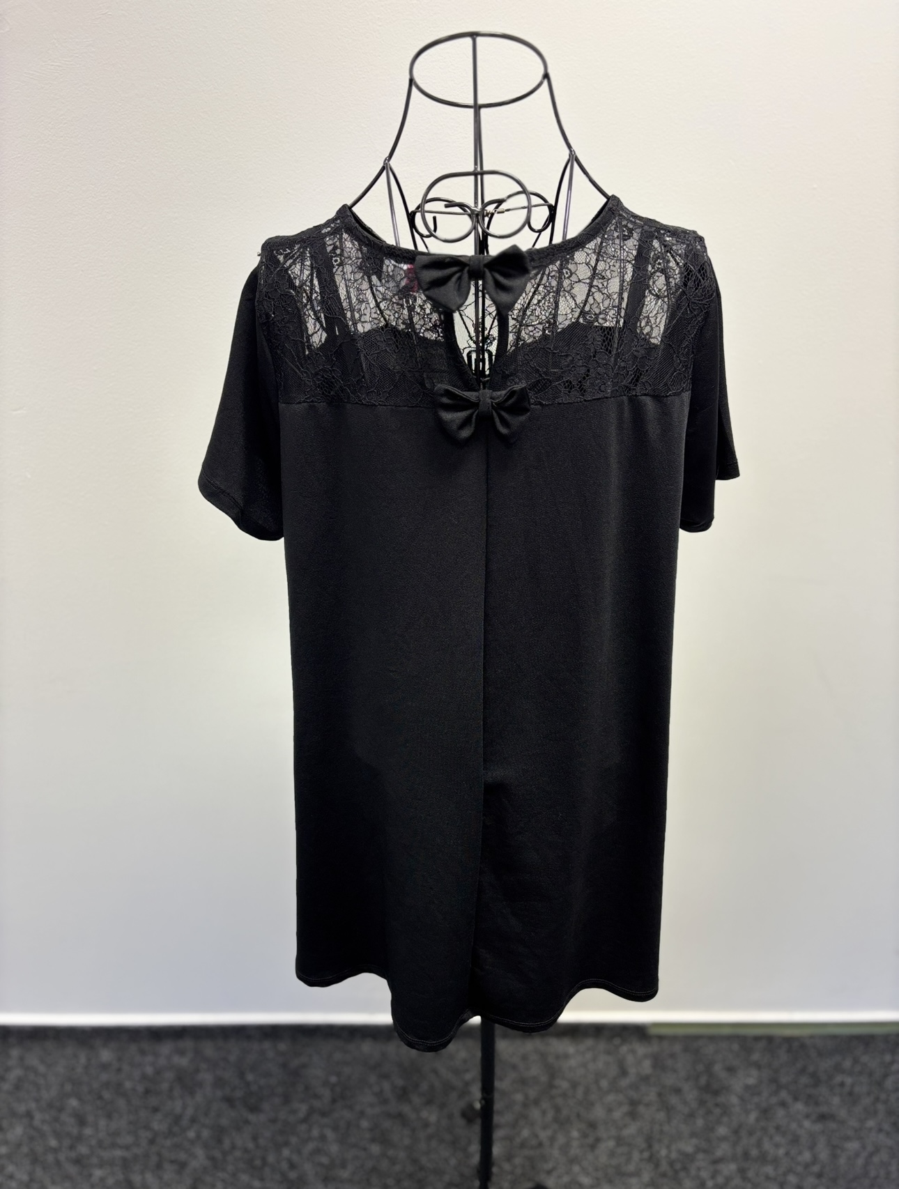 Na zádech má top dvě mašličky.