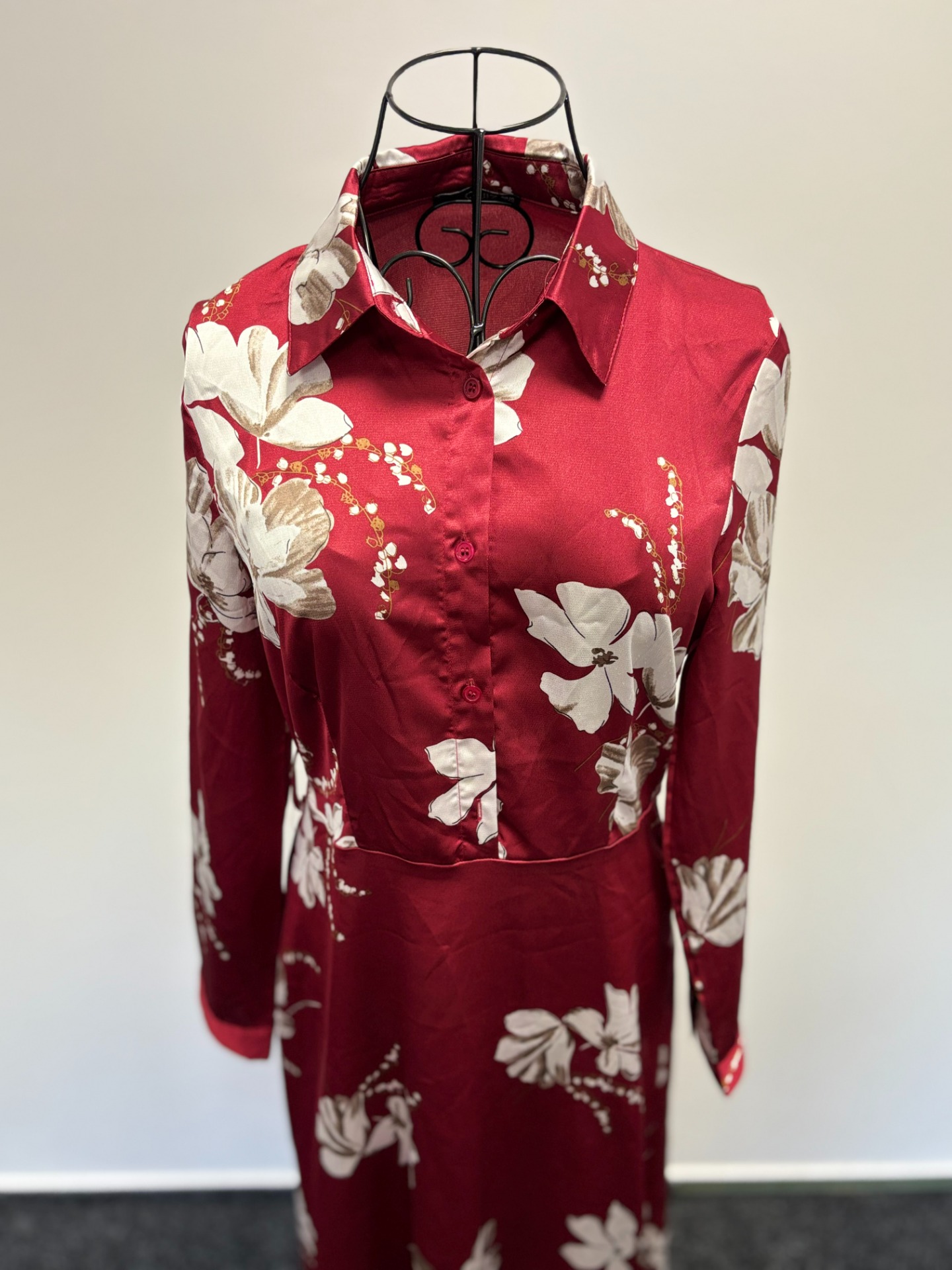 Květinový potisk, lehký splývavý materiál.