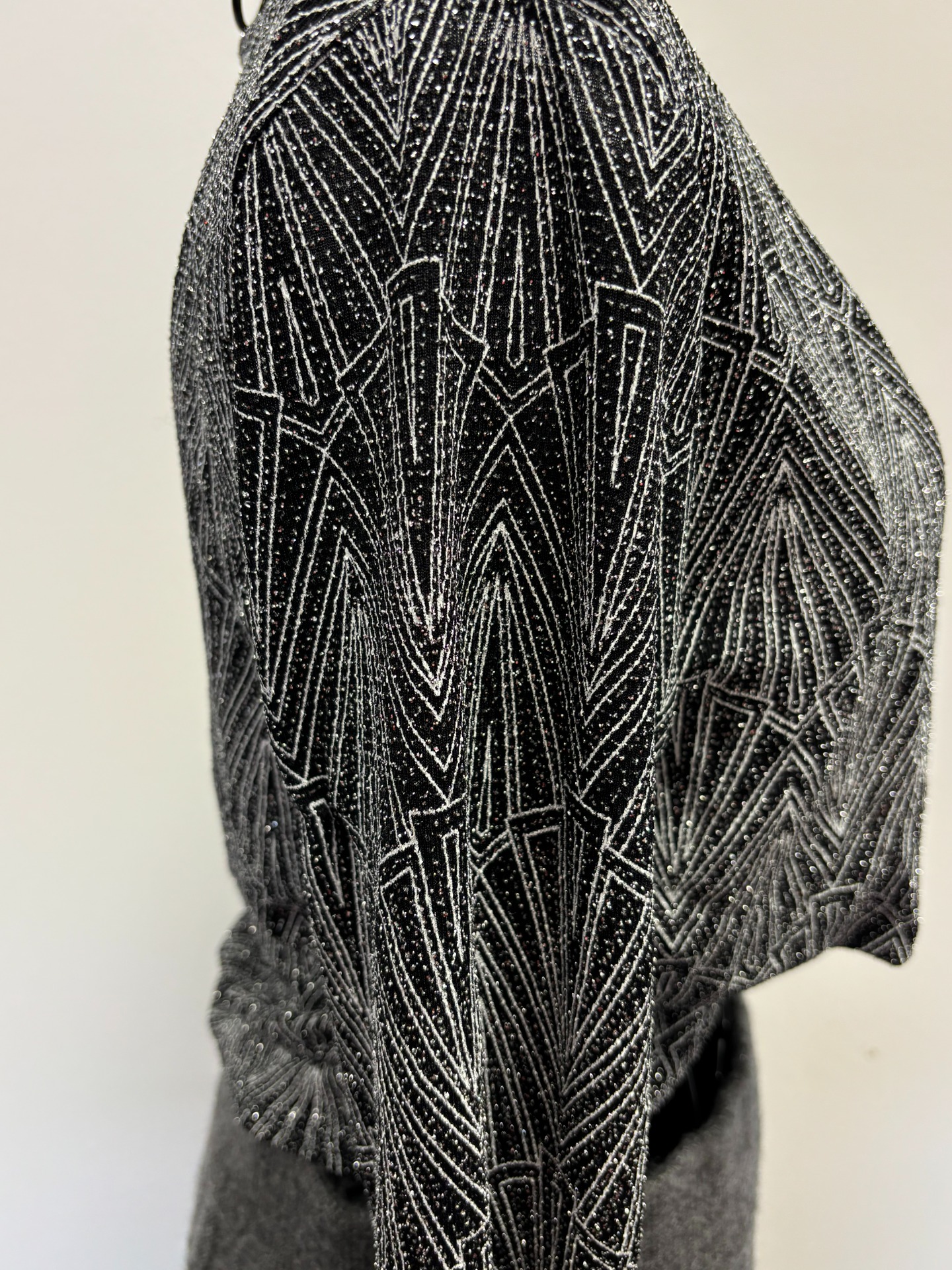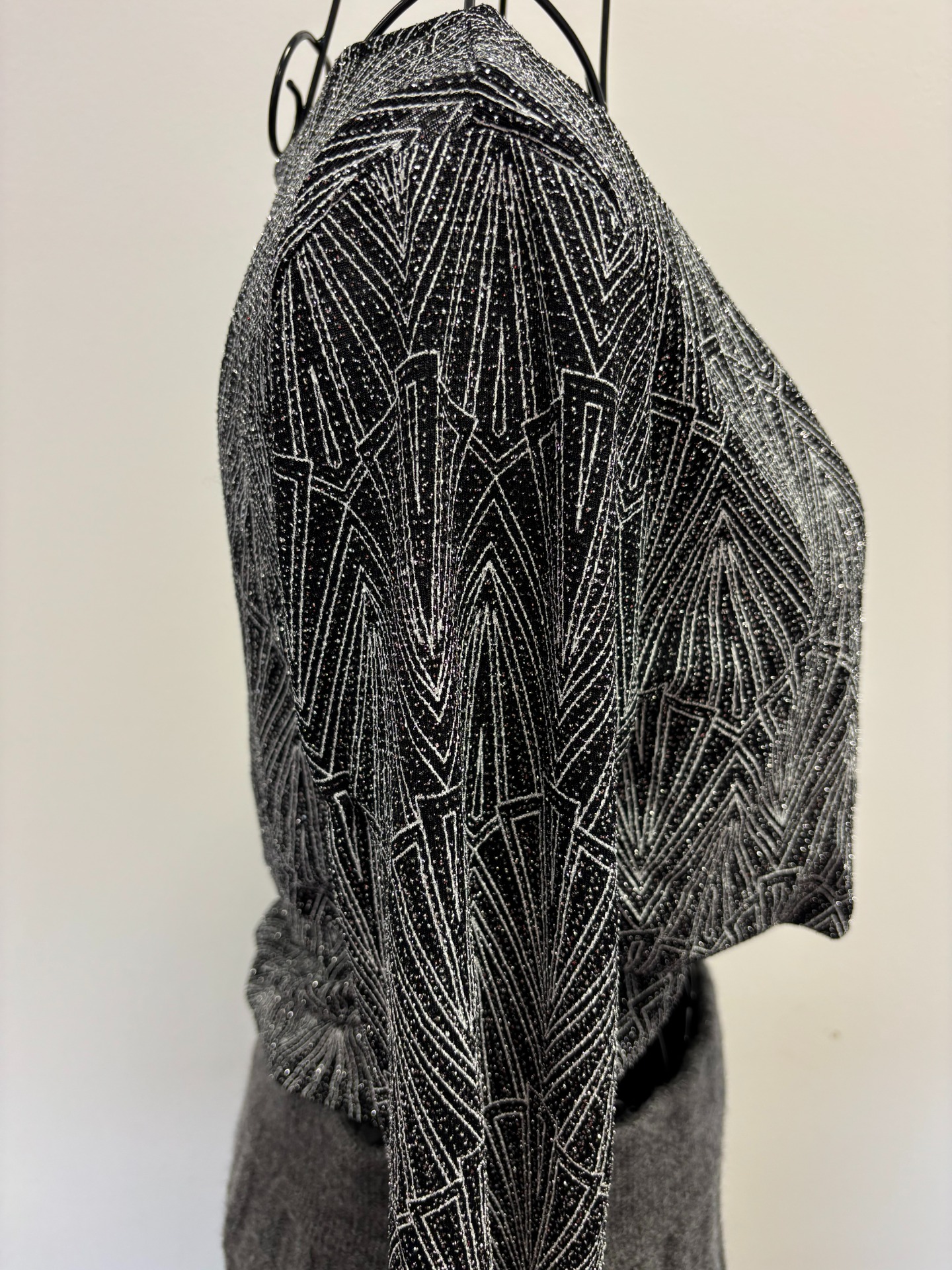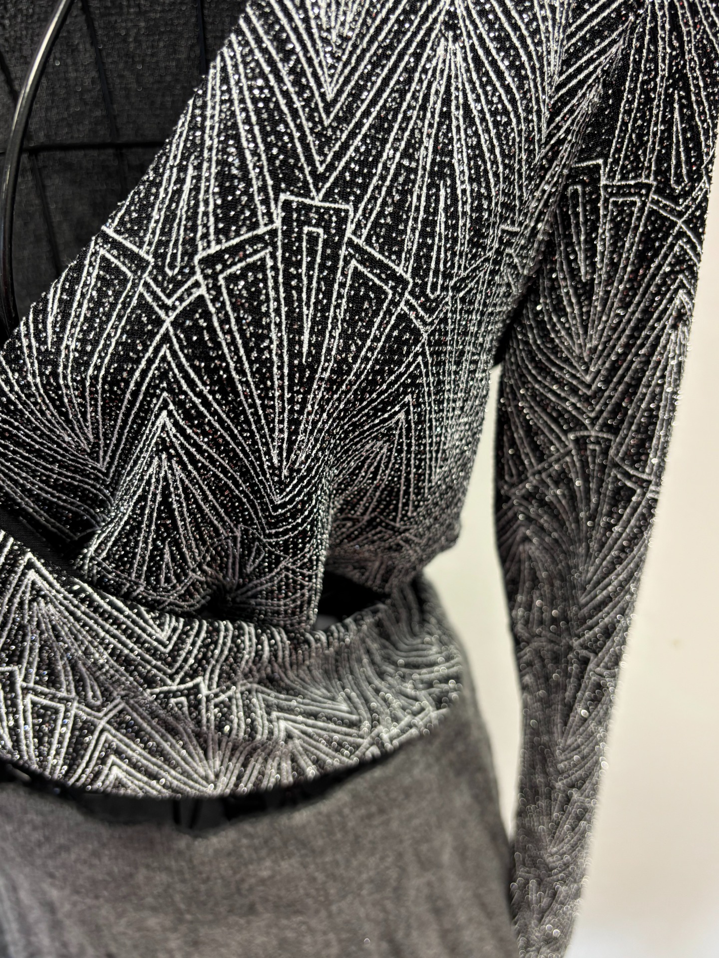 Zkrácený, lichotivý žerzejový top s výstřihem do V. S zavinovacím předním dílem a dlouhými rukávy.